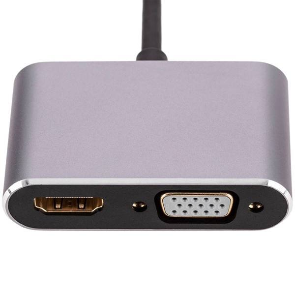 Ce convertisseur USB-C multi-écran permet de connecter vos appareils à un écran HDMI et un écran VGA simultanément. Résolution maximale : HDMI 4K UHD, VGA 1080p Full HD. Plug & play, compact et léger, parfait pour le bureau, les réunions et présentations professionnelles.